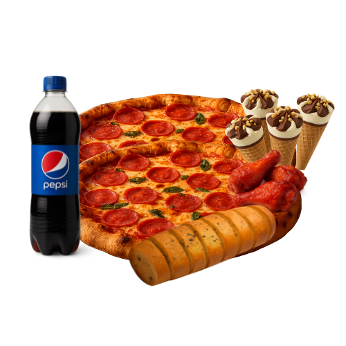 Huge Family Deal$61.902 x Large Pizza, 12 x Pack of Wings, 1 x Garlic Bread, 4x Cornetto & 1 x 1.25Lt Soft Drink