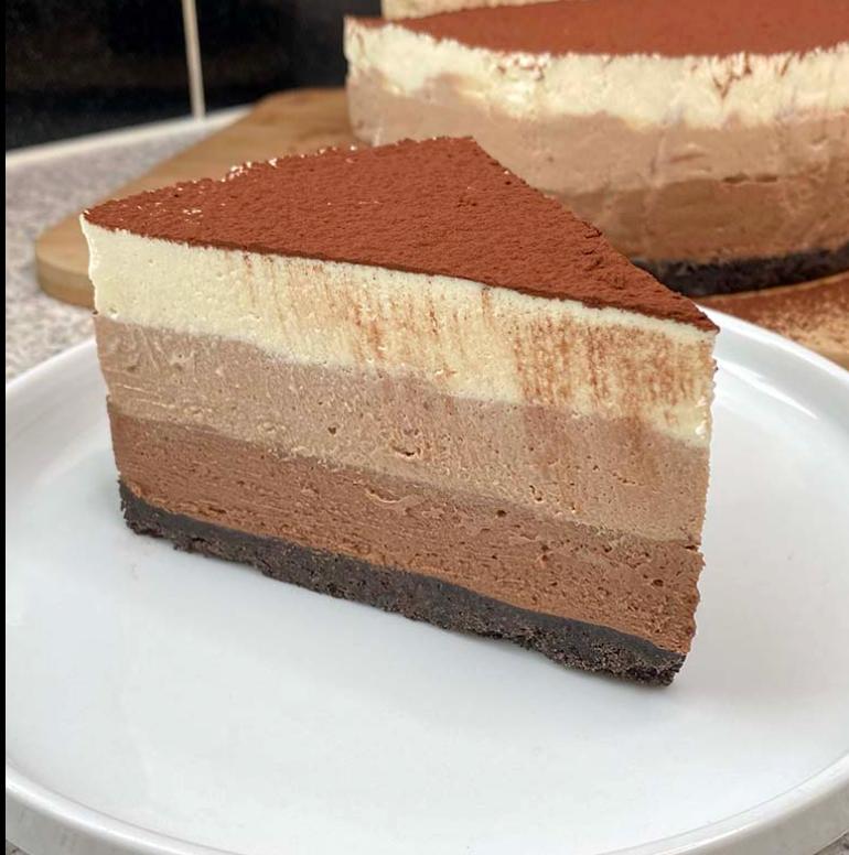 Triple Layered Chocolate Mousse Cake$7.95Serves one person.