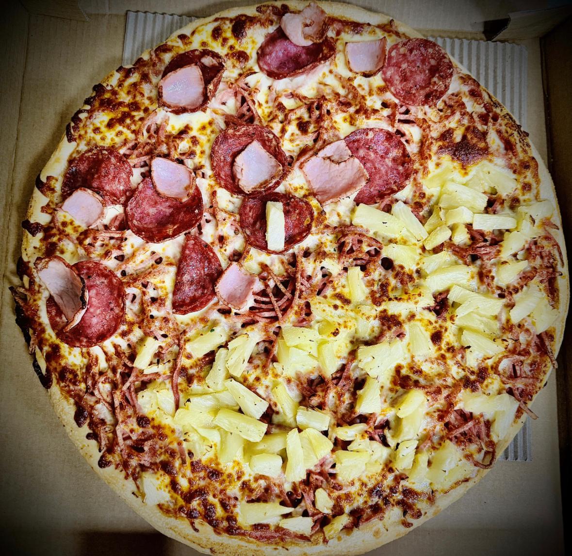 Ham, Salami, Onion, Mushrooms, Capsicum, Olives, Pineapple and cheeseChoose one