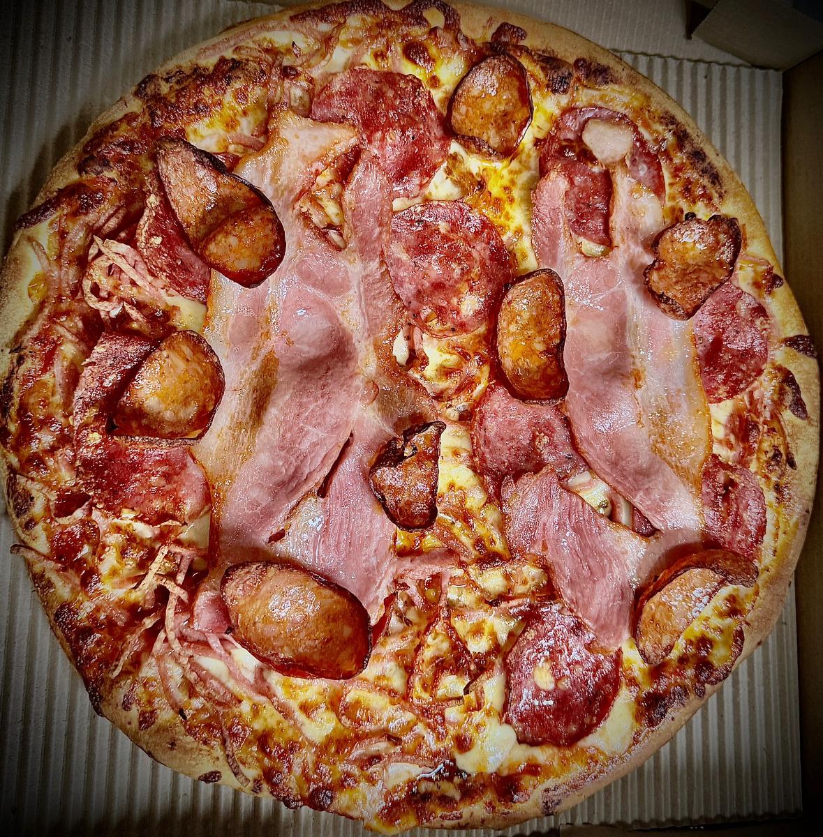 Meatlovers PizzaHam, Cheese, Salami, Bacon, Tomato sauce and BBQ Sauce Optional×