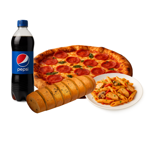 Deal 10$45.901 x Family Pizza, 1 x Garlic Bread, 1 x Any Pasta & 1 x 1.25Ltr Soft Drink