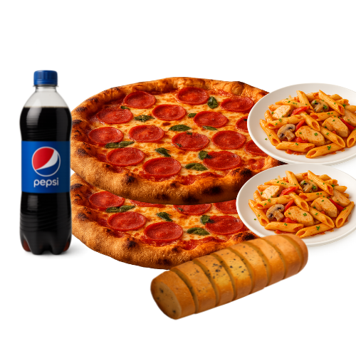 Deal 11$66.902 x Large Pizza, 1 x Garlic Bread, 2 x Any Pasta & 1 x 1.25Ltr Soft Drink